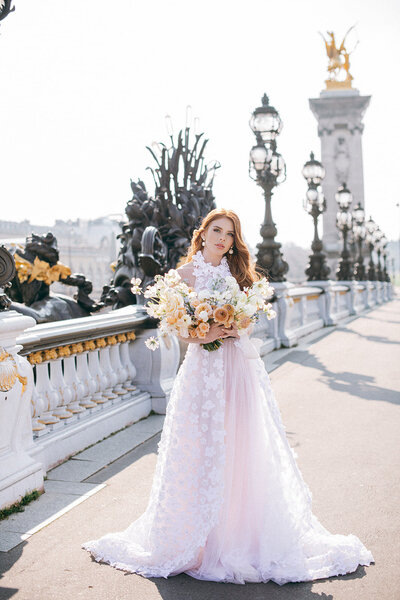 Plongez dans l’univers envoûtant d’un shooting mariage éditorial, capturé sous les premiers rayons du printemps. Nous sommes passés par les spots iconiques de Paris, du Pont Alexandre III et son décor somptueux couvert de dorures, à l’esplanade du Louvre, symbole des arts et de l’histoire.